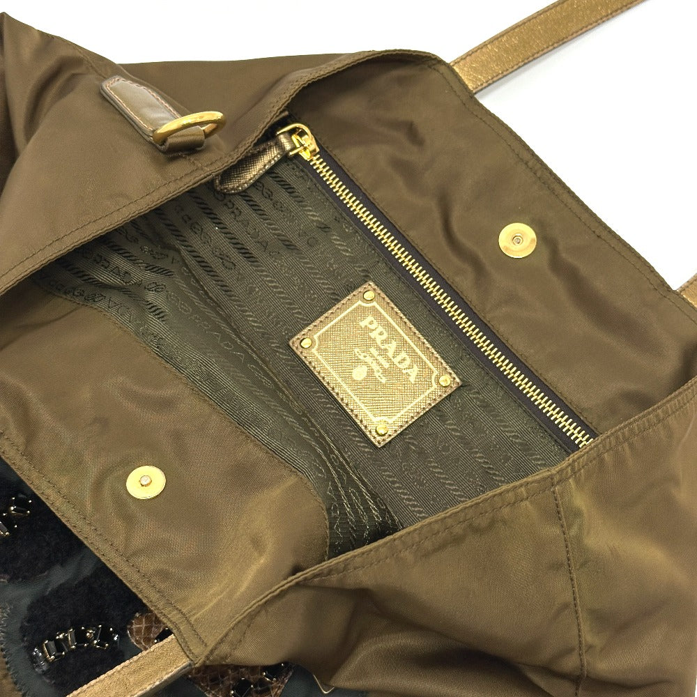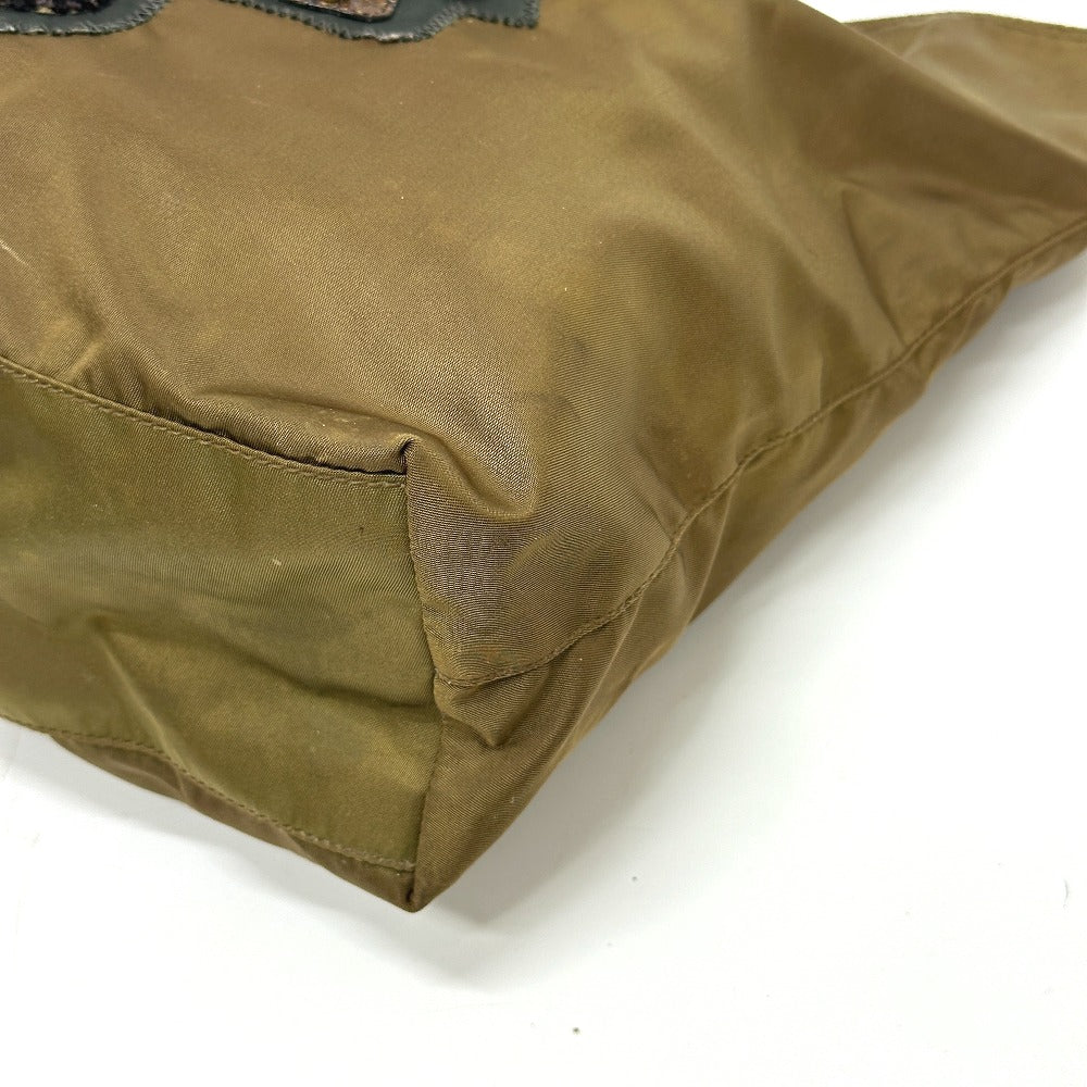 PRADA Tote Bag Nylon, Leather Brown type Bear Stone