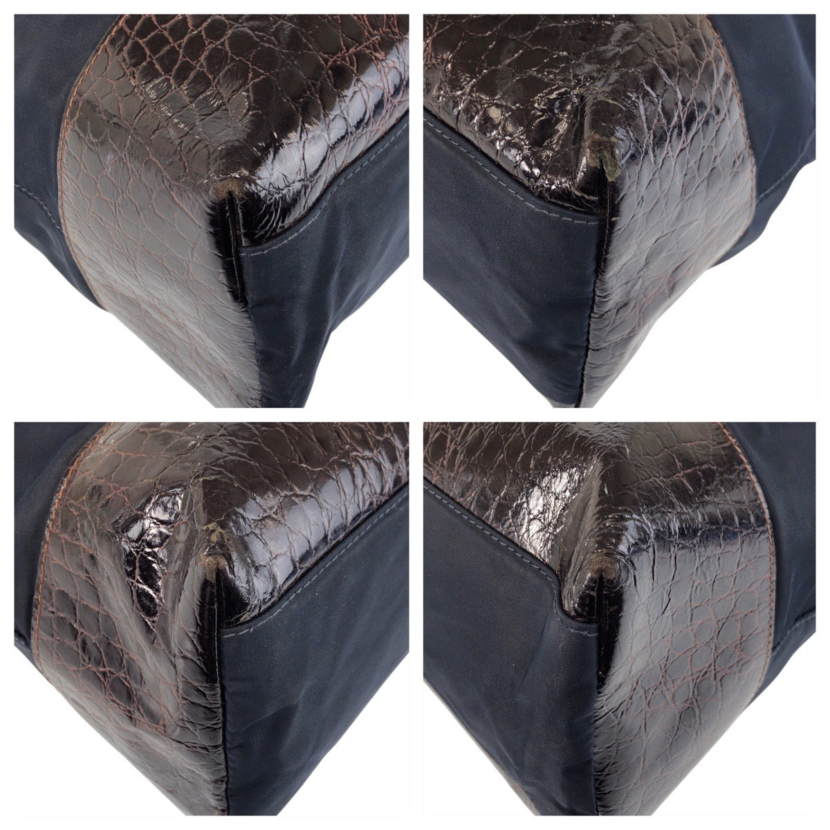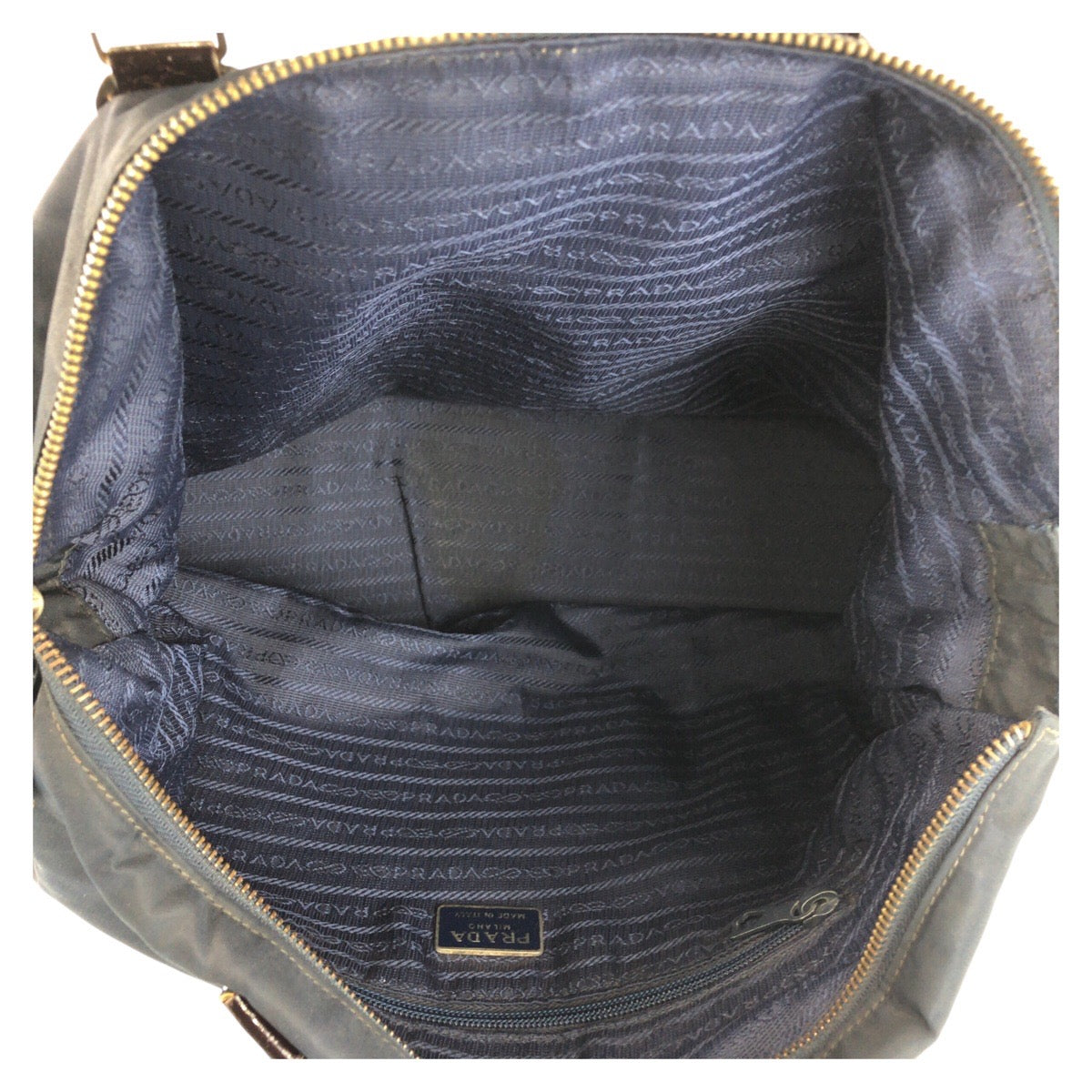 PRADA Tote Bag Nylon, Leather Navy brown Tote Bag handbag Test Triangle With logo Women Used Authentic