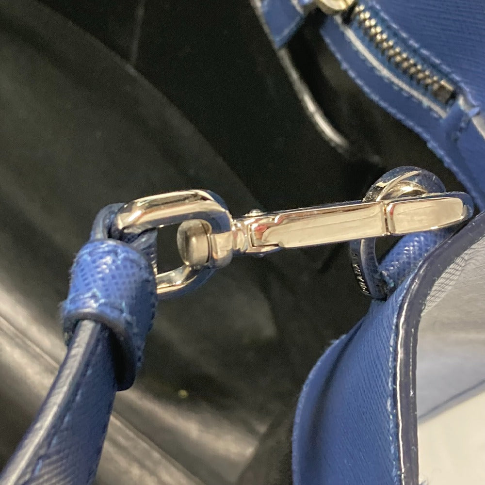 PRADA Tote Bag Safiano leather blue Bag Crossbody Shoulder Bag Triangle logo plate mens Used Authentic