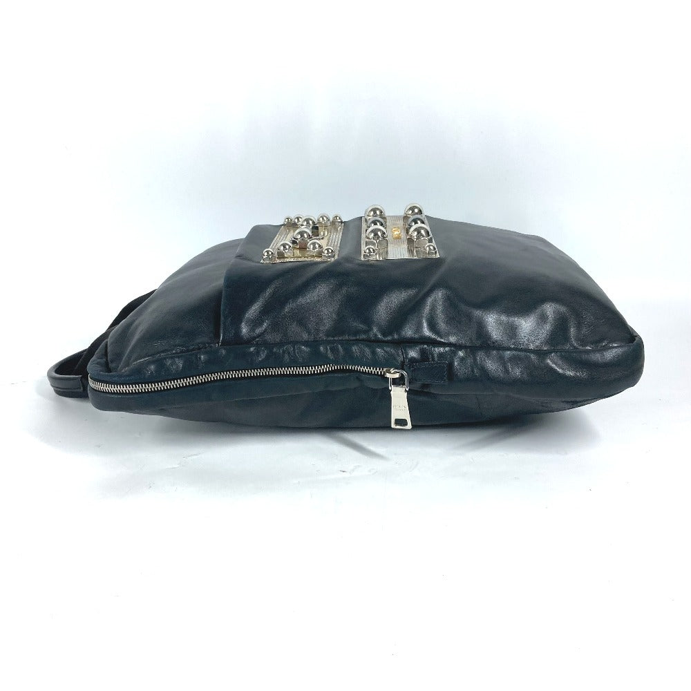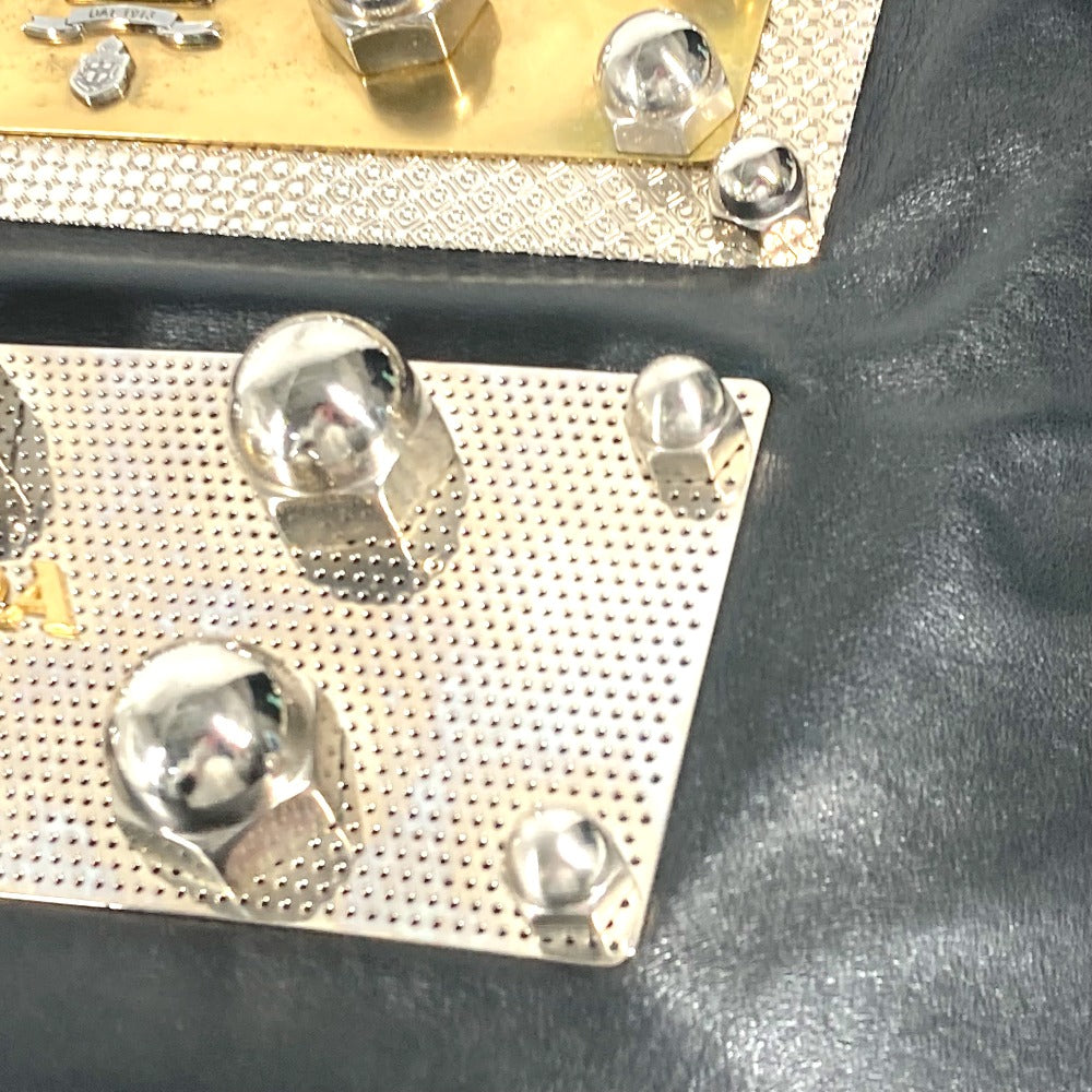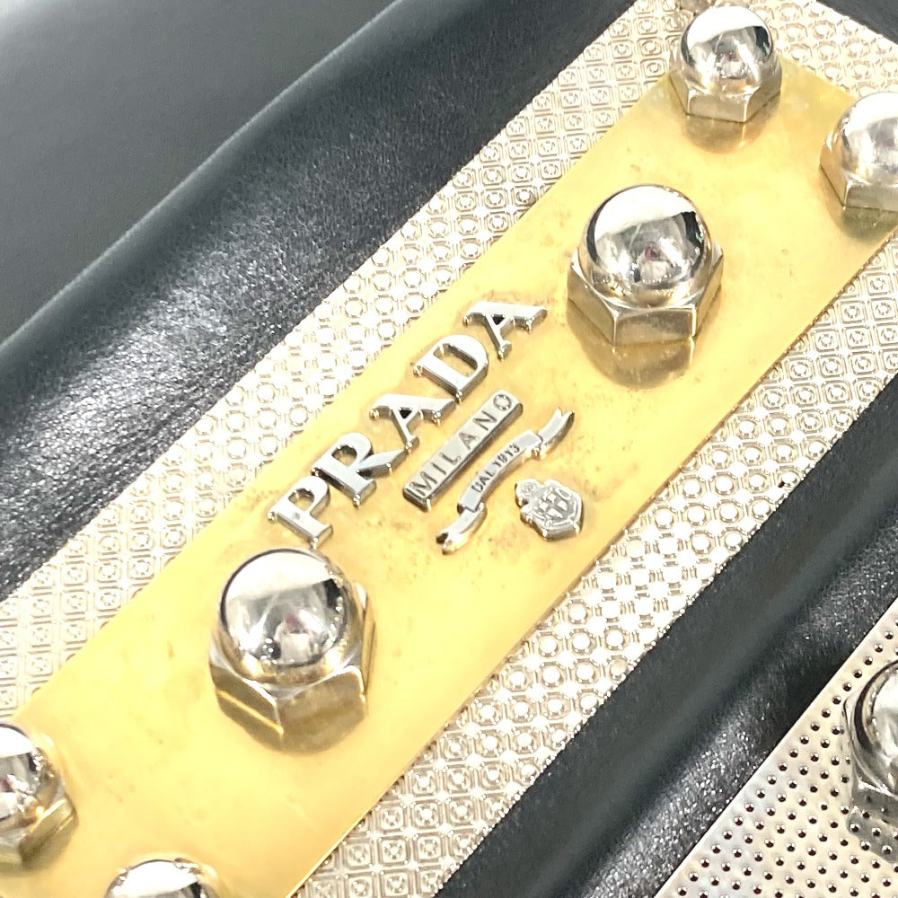 PRADA Tote Bag VA0744 leather black logo metal plate mens(Unisex) Used Authentic