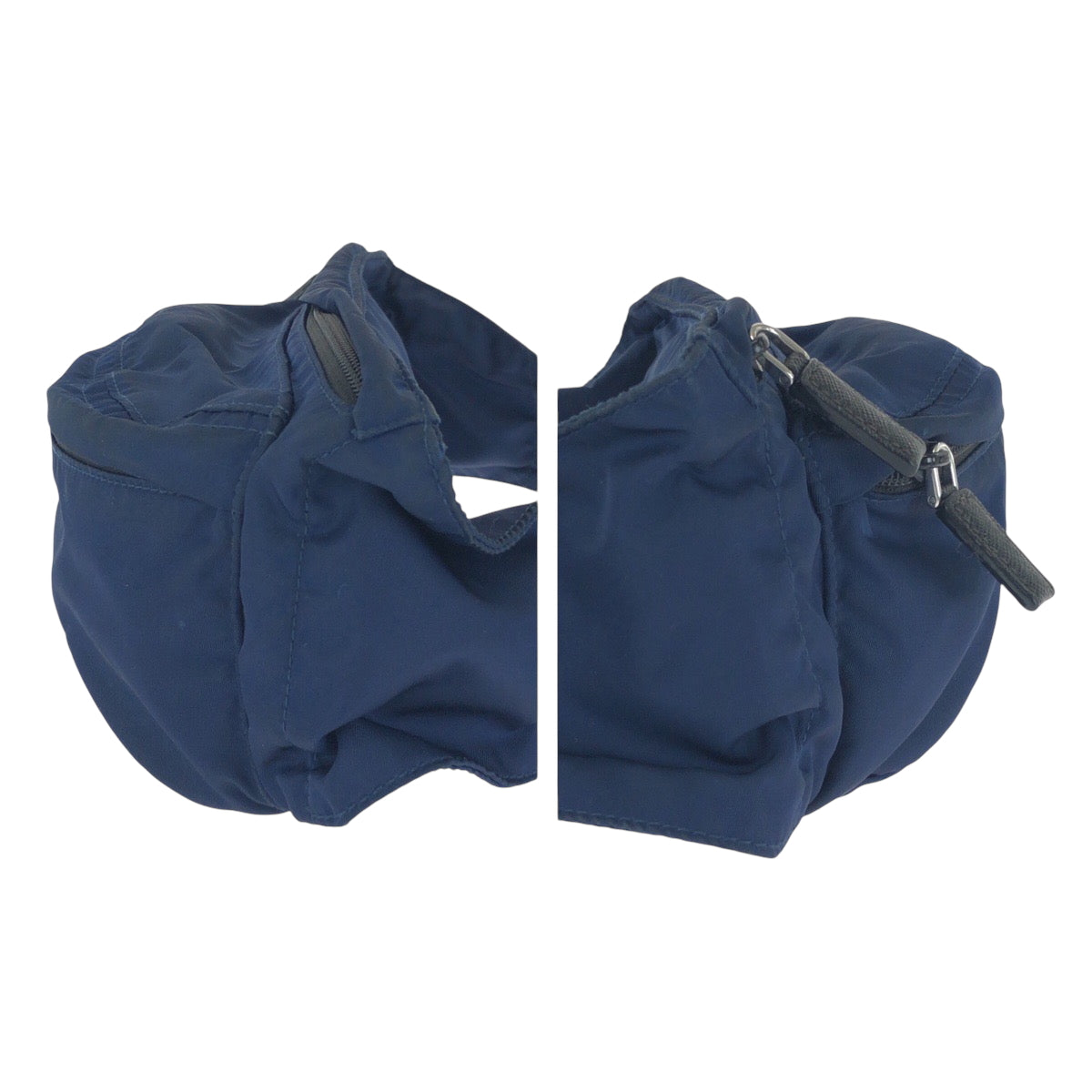 PRADA Waist bag Nylon Navy Black SilverMetal Waist Bag Bum Bag Test Triangle With logo mens Used Authentic