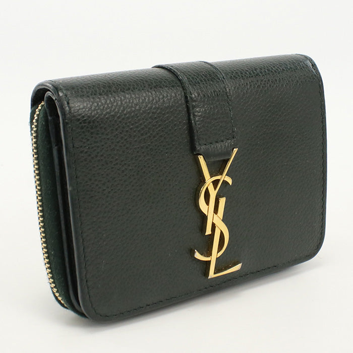 SAINT LAURENT SL85980 Compact zip wallet YSL line Folded wallet green Calfskin Women