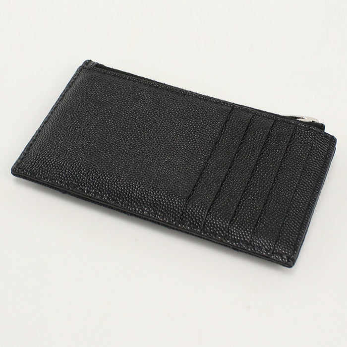 SAINT LAURENT SL86491 Fragment Zip Card Case Coin Pocket Calfskin Black unisex