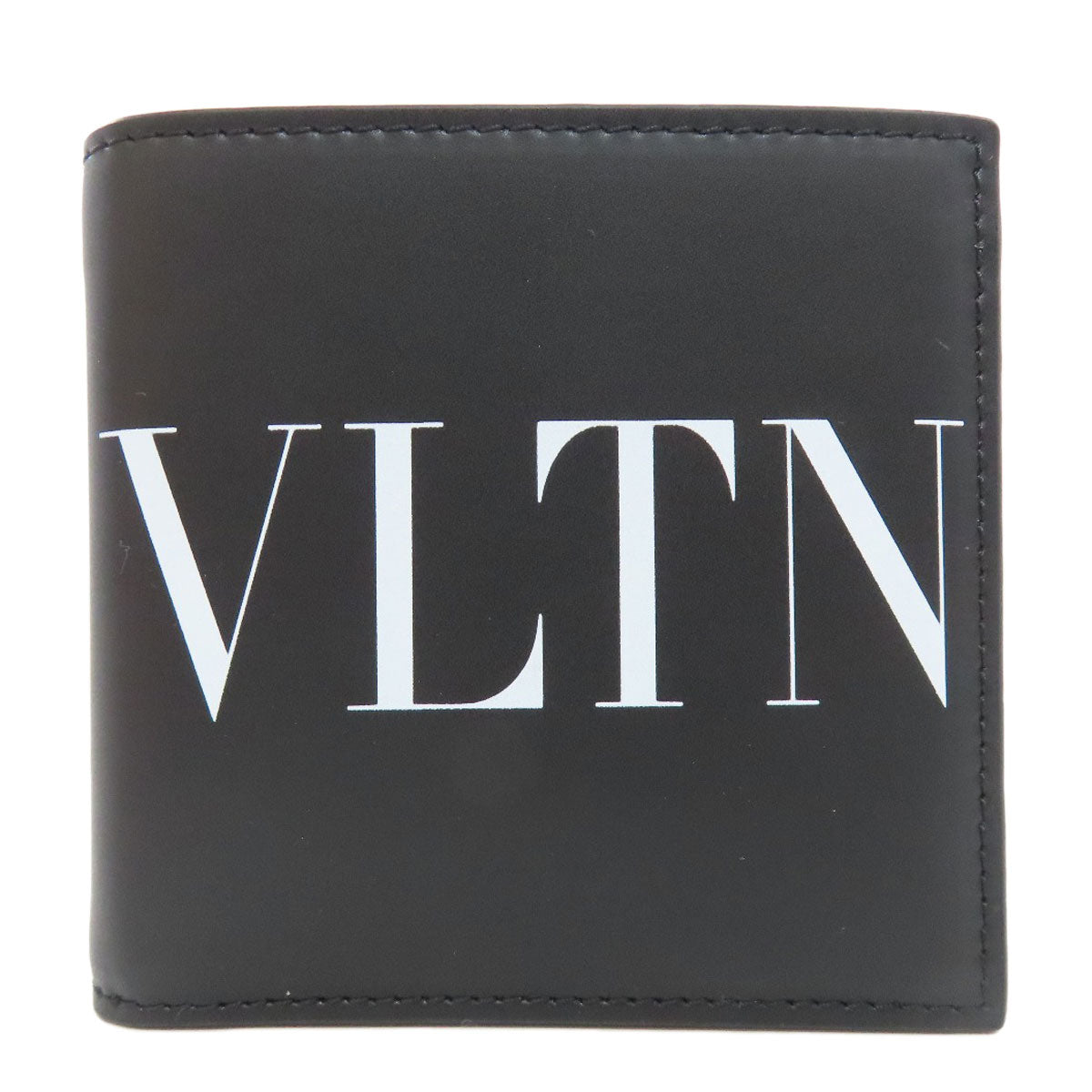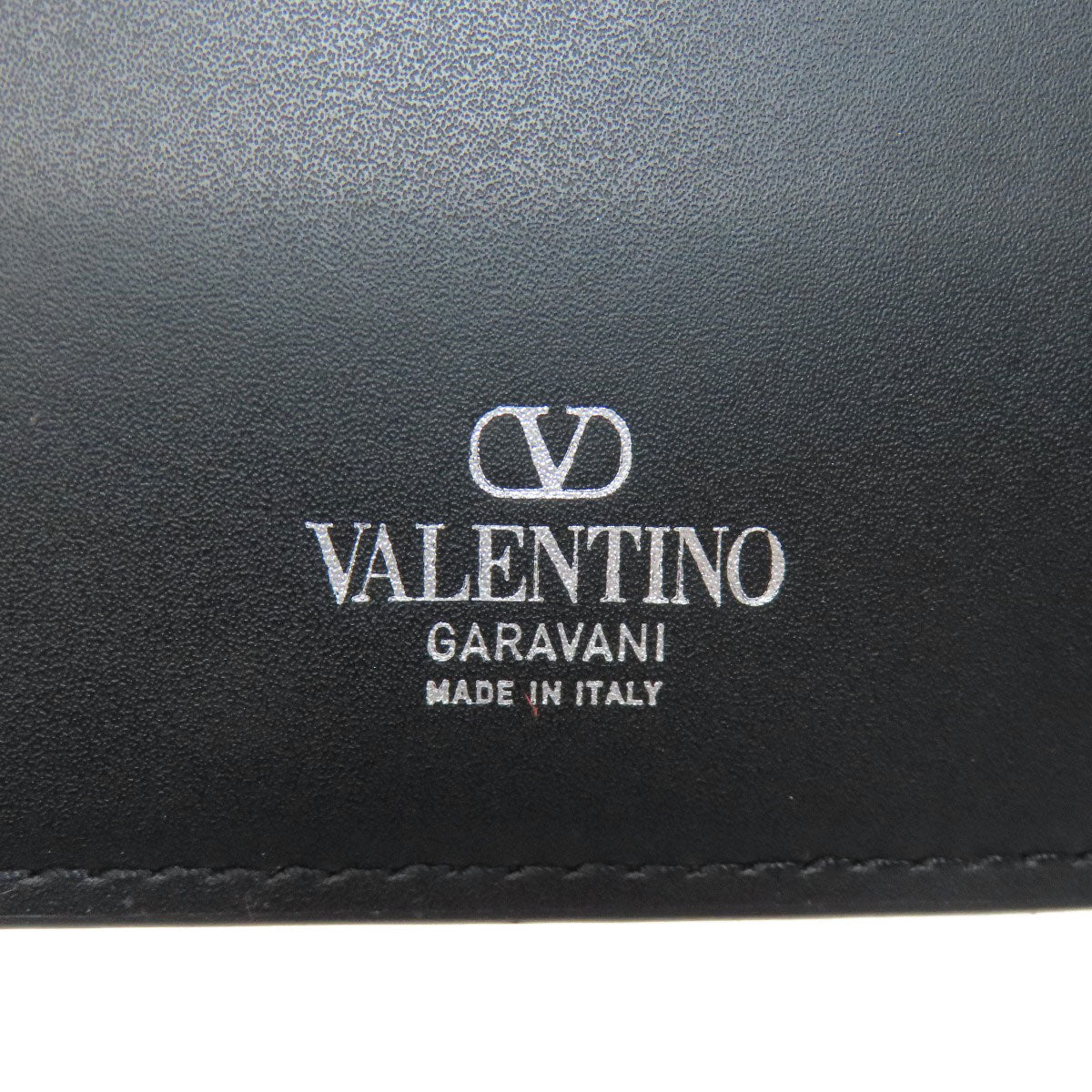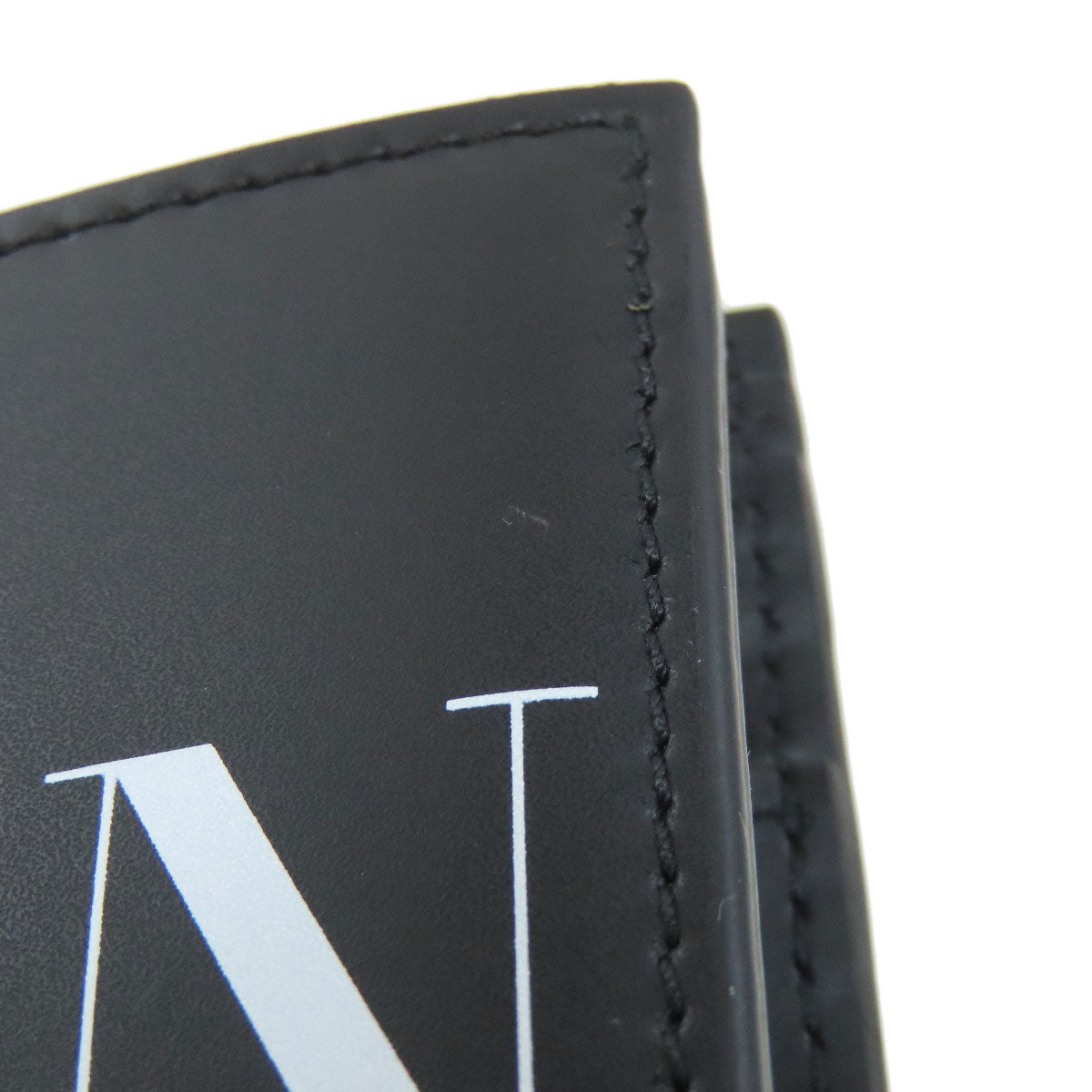 VALENTINO Bifold Wallet leather black logo mens Used Authentic