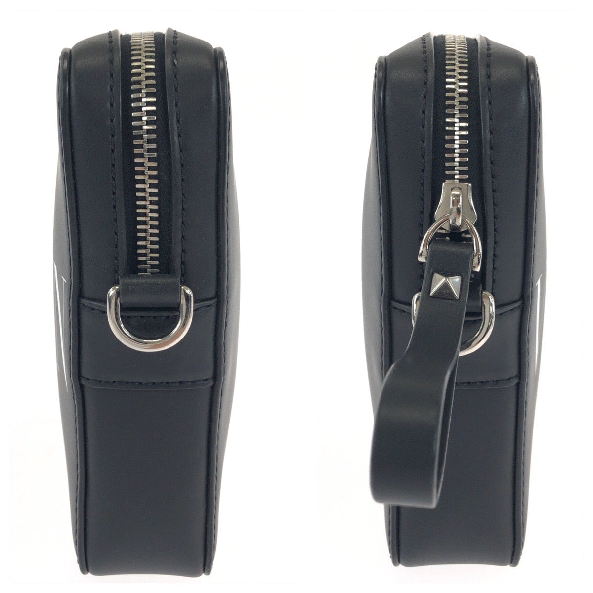 VALENTINO Shoulder Bag leather Black White Shoulder Bag pochette VLTN logo Women Used Authentic
